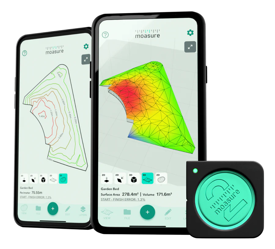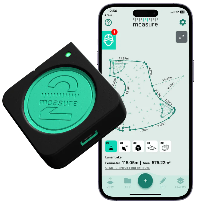 Using traditional tools often leads to measurement errors and guesswork when dealing with complex shapes. Instead, Moasure’s patented technology uses motion-based measuring to simplify and streamline your workflow — no need for GPS or lasers.