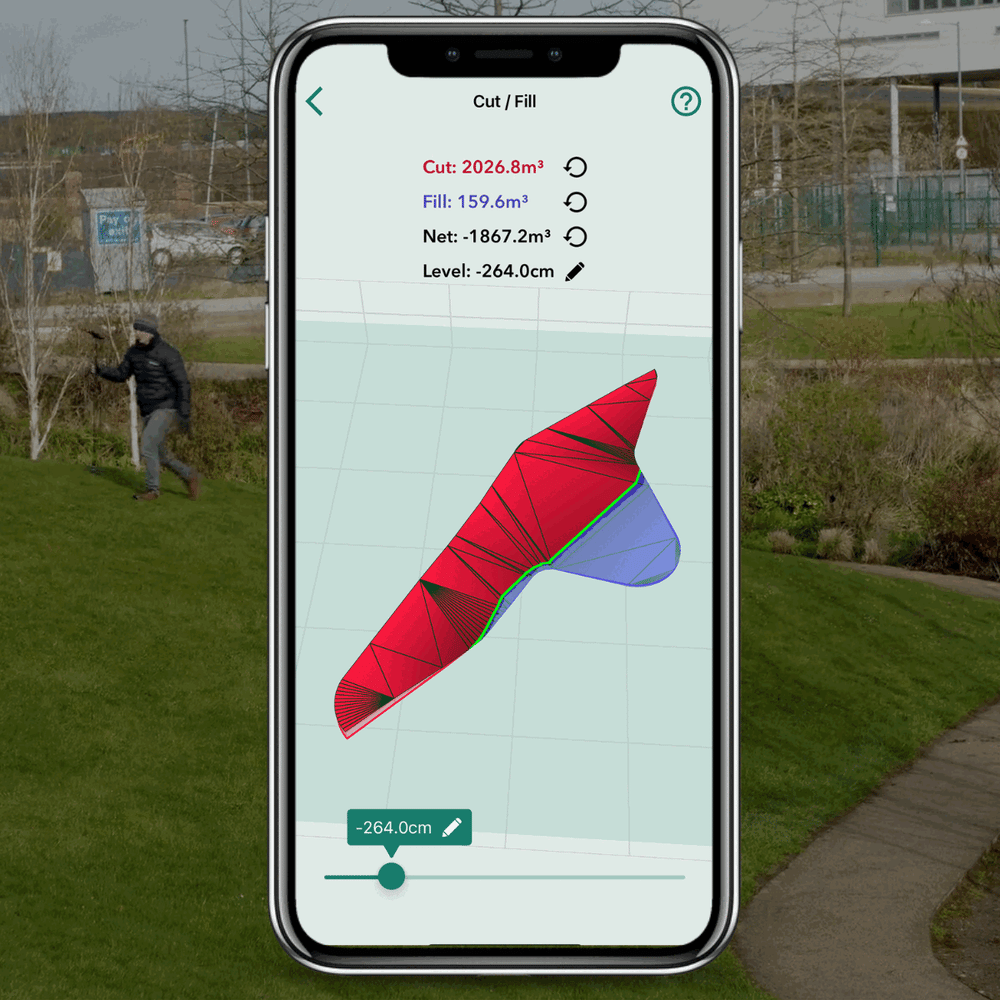 A simple tap on the 'zero net volume' button displays the required elevation level to eliminate the need to move material on or off site.